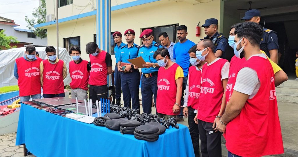 उनीहरूको साथबाट प्रहरीले कम्पनीको ल्यापटप ७ थान, राउटर ३ थान, मोबाइल १३ थान, हार्डडिस्क १ थान, हेडफोन ४ थान, वेभ क्यामेरा १ थानलगायत सामानहरू बरामद गरेको छ ।