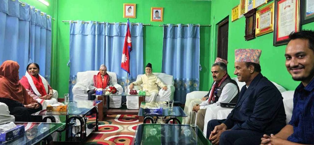 मकवानपुर । बागमती प्रदेशका प्रदेश प्रमुख दीपक प्रसाद देवकोटा र सुदुर पश्चिम प्रदेशका प्रदेश प्रमुख नजिर मियाँबीच शिष्टाचार भेटघाट भएको छ । आइतबार भएको भेटमा बागमती प्रदेशका प्रदेश प्रमुख देवकोटालाई सुदूरपश्चिम प्रदेशका प्रदेश प्रमुख मियाँले बधाइ तथा सफल कार्यकालको शुभकामना दिएका थिए ।