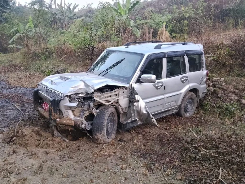 सोमबार बिहान ०५ः३० बजे मनहरी–९ खरङ्गा स्थित पुर्व पश्चिम सडक खण्डमा निजगढ बाराबाट चितवनतर्फ जाँदै गरेको प्रदेश ३–०१–२२ च ६८६२ नम्बरको स्कारपियो कार अनियन्त्रित भई सडकको बायाँ साईडमा रहेको विधुतको पोललाई ठक्कर दिई सडकबाट ५० मिटर तल खसेको जिल्ला प्रहरी कार्यालय मकवानपुरले जानकारी दिएको छ ।