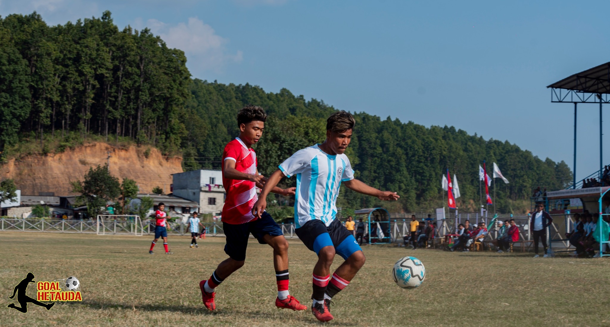 मकवानपुर, ७ मंसिर । हेटौँडा स्पोर्टस् एफसी मुण्डियाल क्लबको आयोजनामा जारी सुदर्शन घिमिरे स्मृति यु–२१ हेटौँडा च्यालेन्ज कप नकआउट फुटबल प्रतियोगिता अन्तर्गत बुधबारको बुधबा भएको पहिलो र दोस्रो खेलमा क्रमशः न्यु डाँफे युथ क्लब र रिगल हेटौँडा रिसोर्ट विजयी भएको छ ।